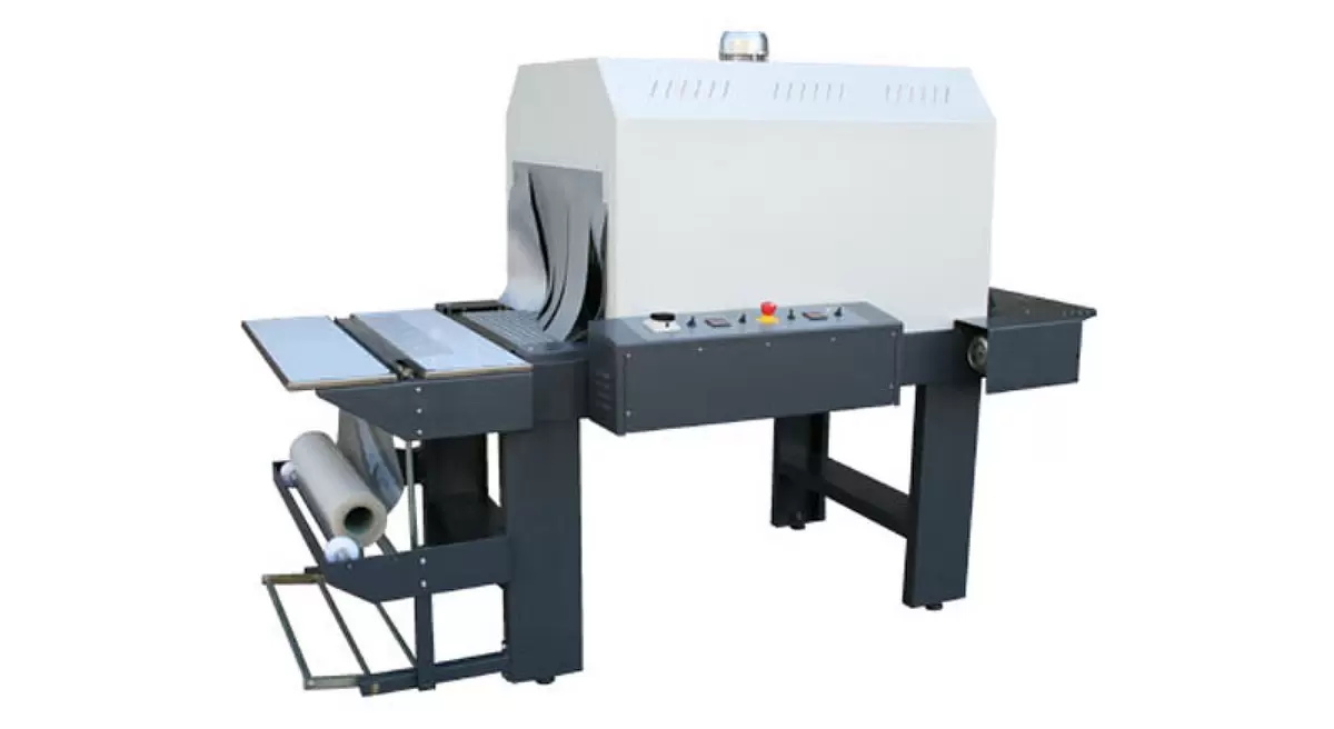 How it works Monobloc hand wounding wrapper, film cutting by hot wire, sealing by hot Teflon coated bar. Tunnel with electronic thermoregulator controlled hot air circulation. Conveyor in steel mesh.